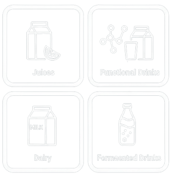 • Juices, flavoured drinks, herbal beverages, and functional formulations