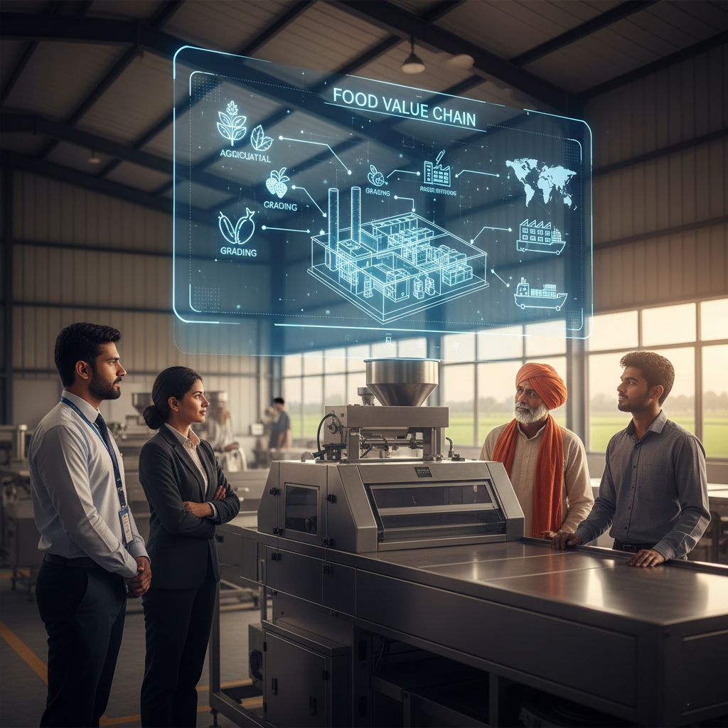 Primary food processing is the foundation of the food processing industry, where raw agricultural produce is converted into clean, graded, safe, and market-ready commodities. This stage is essential for reducing post-harvest losses, improving storage life, ensuring quality consistency, and enabling downstream value addition.