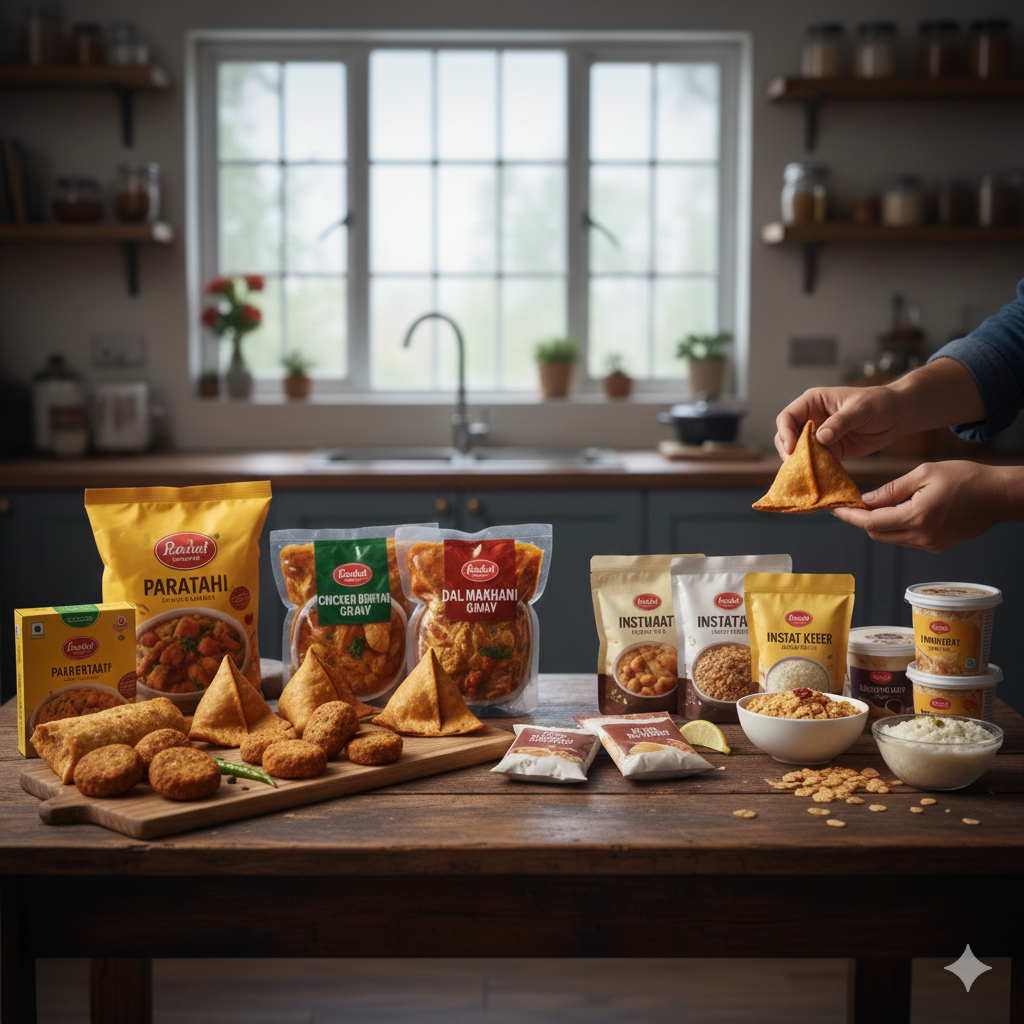 Frozen foods: parathas, samosas, cutlets, kebabs.